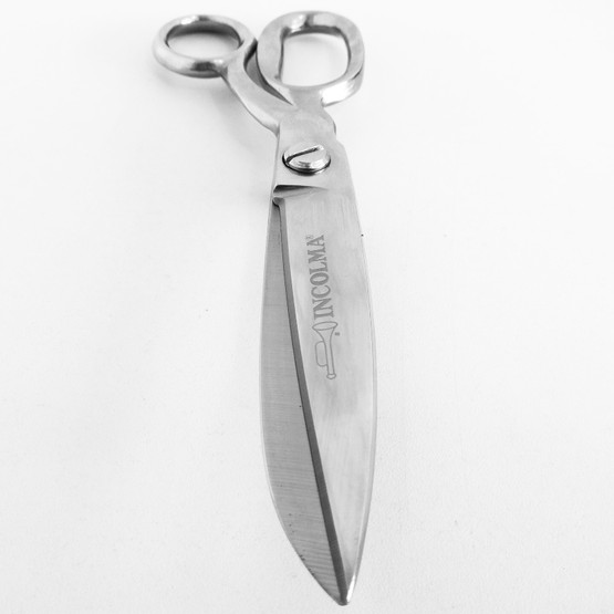 La tijera INCOLMA tipo sastre de tipo pesada, forjadas en acero, alto contenido en carbón, ajuste perfecto. Diseñadas para cortar seda, permiten garantizar un corte perfecto sin dañar ningún tipo de material. El filo se logra con piedra de grano muy fina, para obtener un filo muy suave y consistente.