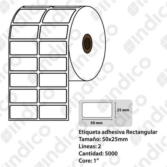 INDICO Etiqueta adhesiva blanca TT 50mmx25mm, 2 linea, rollox 5.000, core 1"