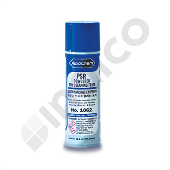lbaChem® PSR elimina grasa, aceite, suciedad y manchas de comida de todos los tejidos. Ideal para fabricantes de ropa, fábricas textiles, tintorerías, bordadores y tapiceros. El polvo blanco absorbente "levanta" las manchas de las telas para que puedan quitarse con un cepillo.
