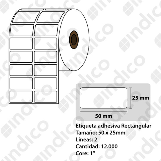 INDICO Etiqueta adhesiva blanca TT 50mmx25mm, 2 lineas, rollox12.000, core 1"