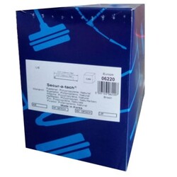 Los sujetadores Secure-A-Tach son cierres de bucle fáciles de usar para cerrarlos permanentemente. Son ideales para la aplicación de etiquetas en mercaderías rígidas. Su forma permite la aplicación fácil y simple en el etiquetado de diferentes tipos de producto tales como bolsos, maletines, cinturones, ropa de hogar, entre otros.