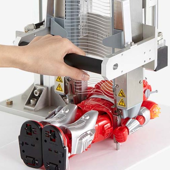 de 15 mm a 200 mm, las grapas fuertes y flexibles se extienden a una amplia variedad de formas y tamaños de productos. Este sistema flexible se puede usar como una unidad independiente o integrarse en líneas de envasado automatizadas de alto volumen para colocar y sostener de forma segura los productos en una tarjeta de respaldo o dentro de un paquete, como: