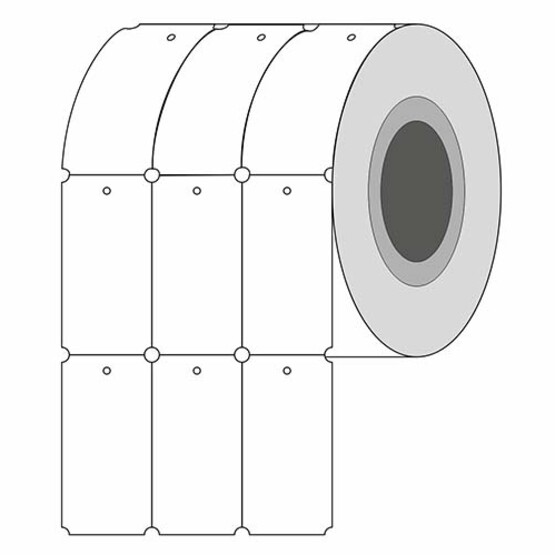 Etiqueta de carton para realizar etiquetas, rollo de 3 lineas por 3000 etiquetas. La marca negra se utiliza para sensado de la impresora. El gramaje de papel es de 160 gramos.