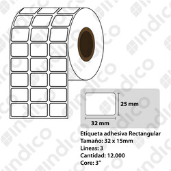 Etiqueta adhesiva blanca TT 32mmx25mm, 3 lineas, rollox12.000, core 3"