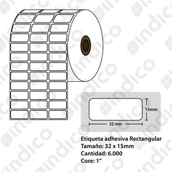 Etiqueta adhesiva blanca TT 32mmx15mm, 3 lineas, rollox 6.000, core 1"