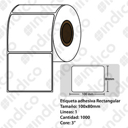 Etiqueta adhesiva blanca TT 100mmx80mm,1 linea, rollox 1.000, core 3"