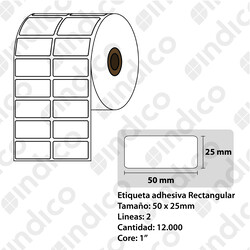 Etiqueta adhesiva blanca TT 50mmx25mm, 2 lineas, rollox 8.000, core 3"